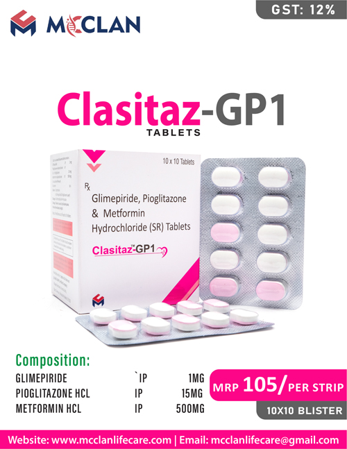 GLIMEPIRIDE 1MG + PIOGLITAZONE HCL 15MG + METFORMIN HYDROCHLORIDE 500MG