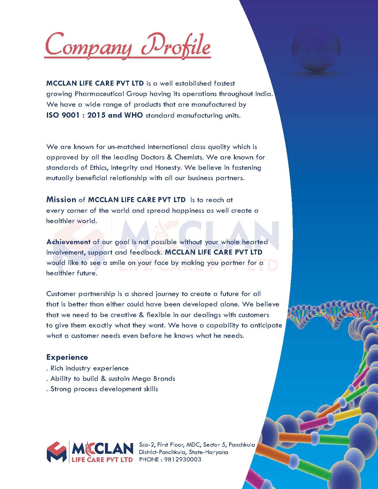 Mcclan lifecare Pvt. Ltd. is a dynamic and forward-thinking company, engaged in the manufacturing, supplying, trading